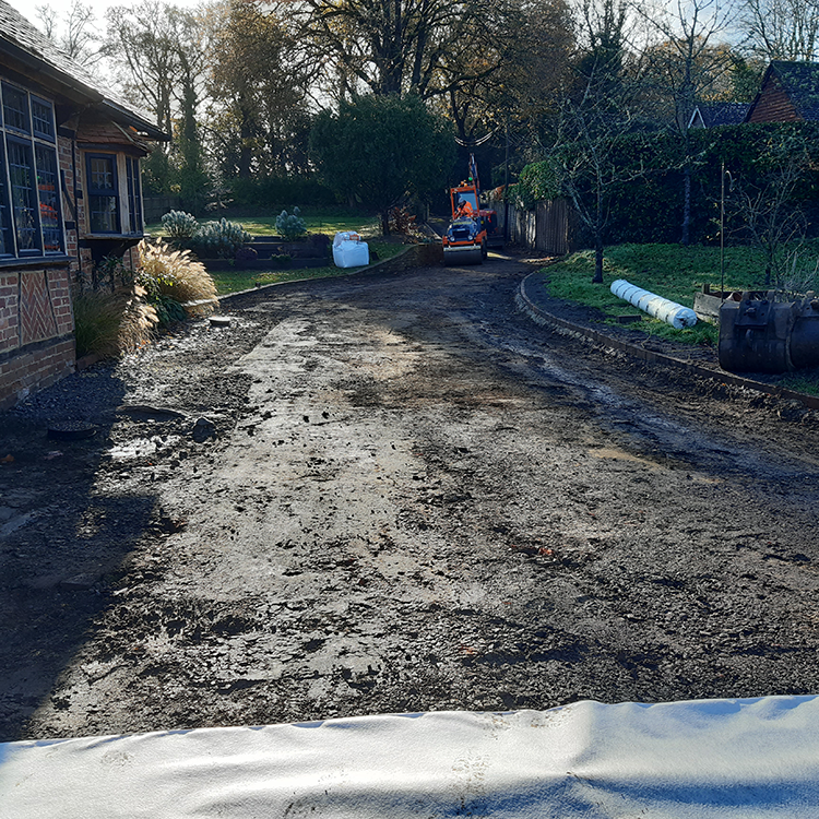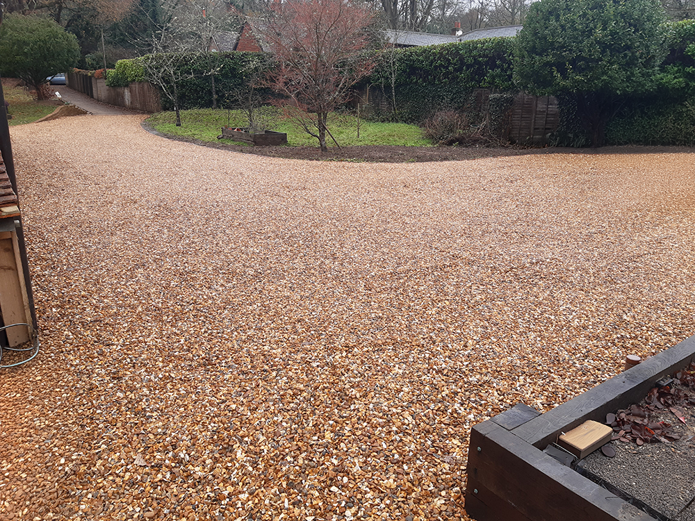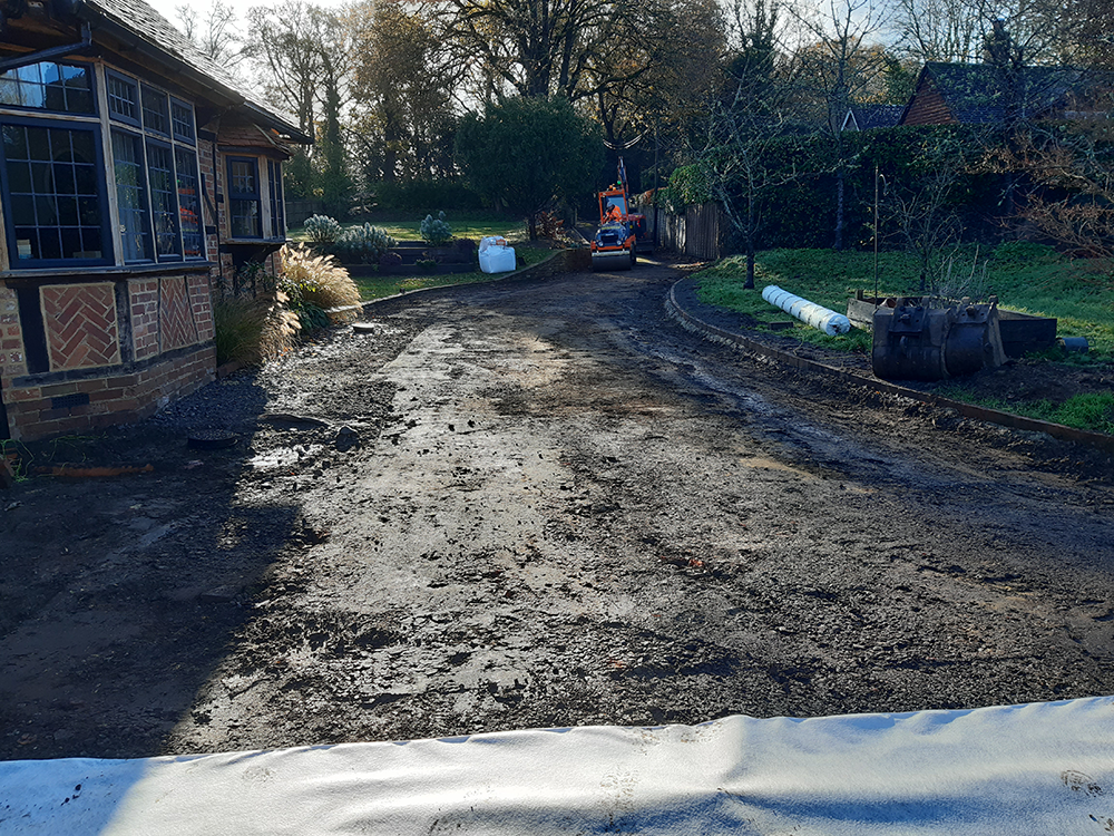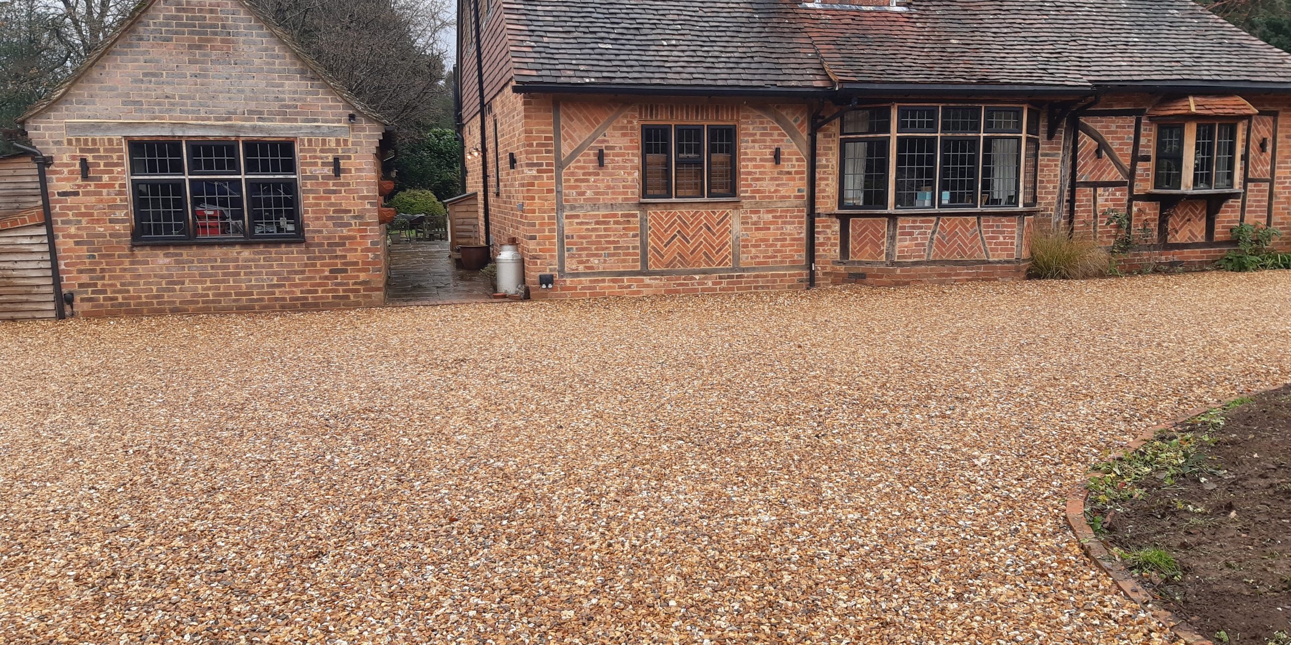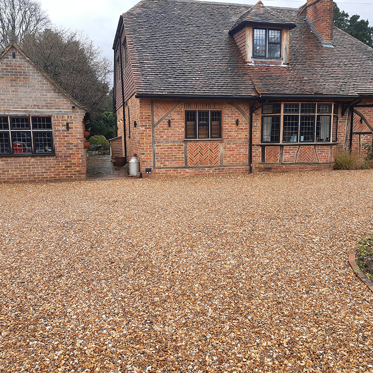 The materials chosen for this driveway were selected with great care, with the intention of achieving a Surrey country cottage aesthetic while ensuring the surface offered excellent drainage.